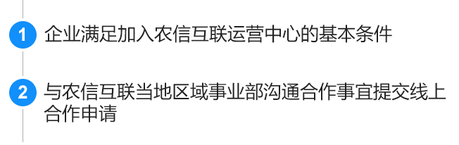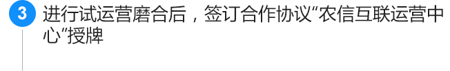 平台模式下,80%的企业无需自建市场,去中间化的进程下,中间市场联营是降低交易成本的必然选择,传统经销商何去何从?农信互联运营中心是农信互联与区域合作商以服务当地市场为主要目的,依托农信互联平台及运营体系,结合合作商线下运营能力,共同打造的线上线下一体化服务的合作项目;依托农信大平台,运营中心遴选新中间商,共建中间市场,用互联网手段托管农牧企业的线下服务渠道。