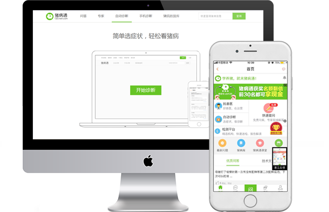 在线解答、互动研讨、猪病数据库、自动诊断,